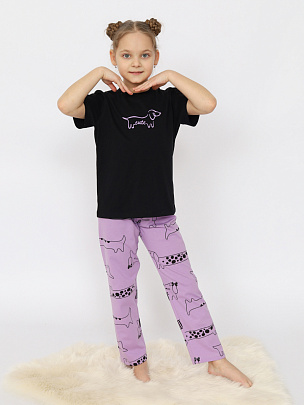 Пижама для девочки (футболка, брюки) черная
