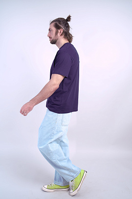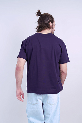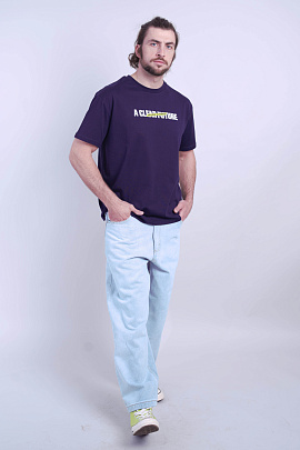 Футболка прямого силуэта длиной до бедер. Короткий рукав. Круглая горловина обработана узкой притачной обтачкой из рибаны с эластаном. Полочка декорирована принтом и текстильной нашивкой "ясное будущее естественное и аутентичное".