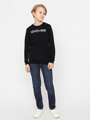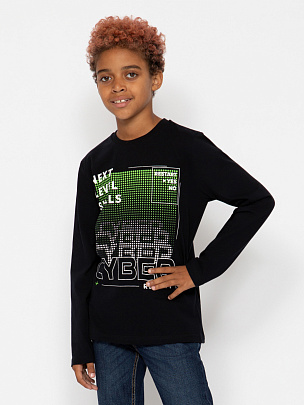 Джемпер с длинными рукавами, притачным поясом и манжетами. Рукав-реглан, отрезной, нижняя часть рукава декорирована принтом "Киберпространство".