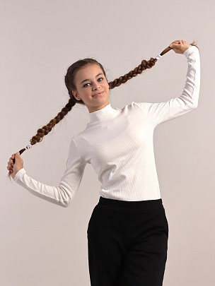 Водолазка из интерлока с разборой(лапша), с длинными рукавами и воротником-стойкой.