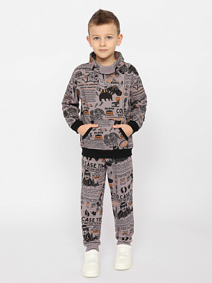 Толстовка с длинными рукавами, притачным поясом и манжетами. Манжеты и пояс выполненя из полотна с добавлением эластана. Капюшон с притачной планкой и подкладкой контрастного цвета, планка декорирована принтом. Перед декорирован принтом "тираннозавр Рекс".